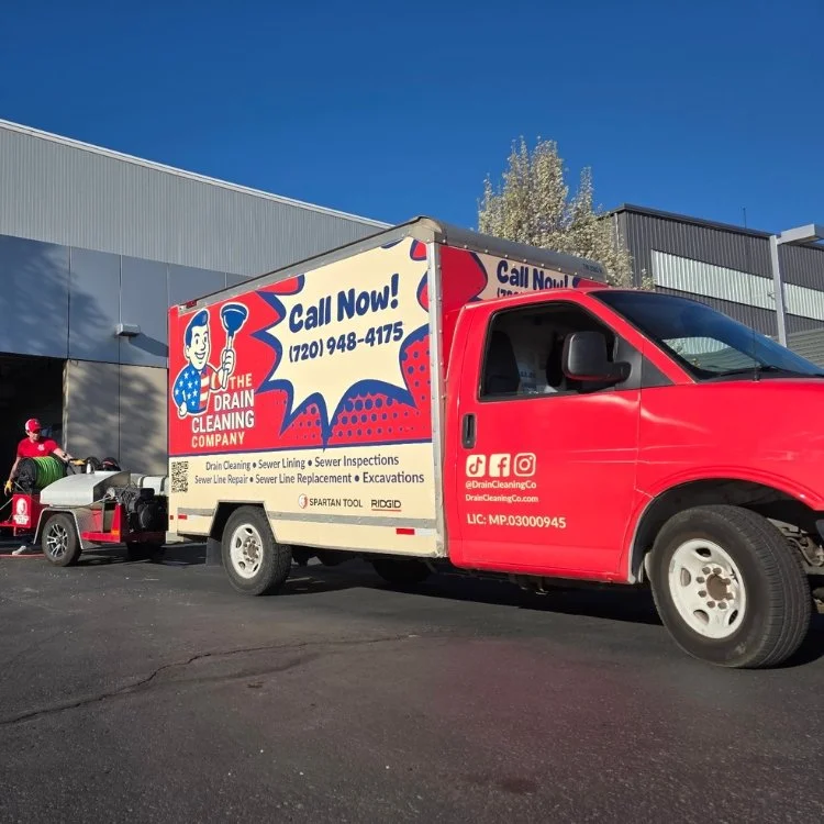 The Drain Cleaning Company service van working on commercial sewer line issue in Broomfield, CO